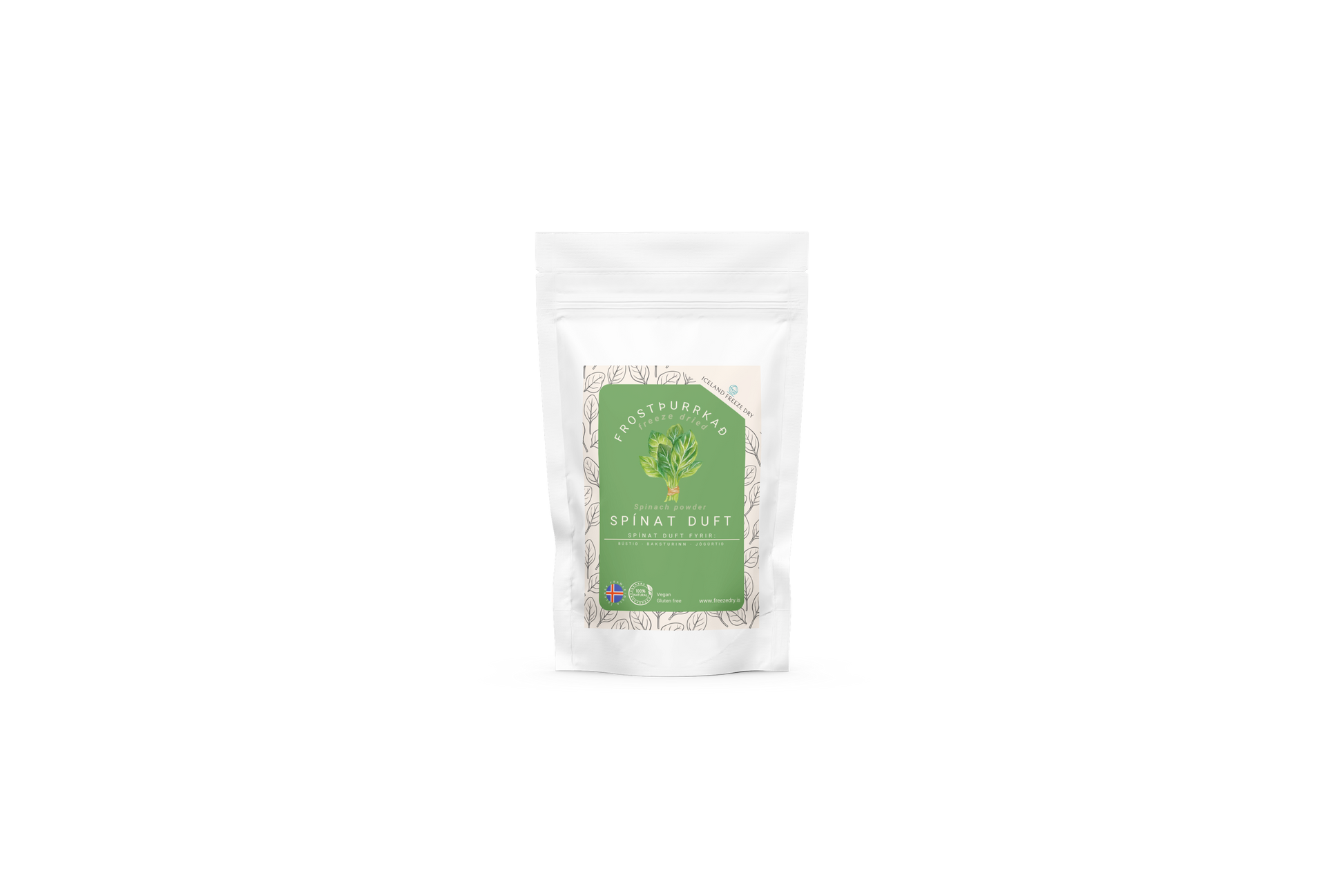 Spínat er stútfullt af næringarefnum, andoxunarefnum, vítamínum og steinefnum en með frostþurrkun eru allt að 97% þessa innihaldsefna varðveitt í hráefninu.
